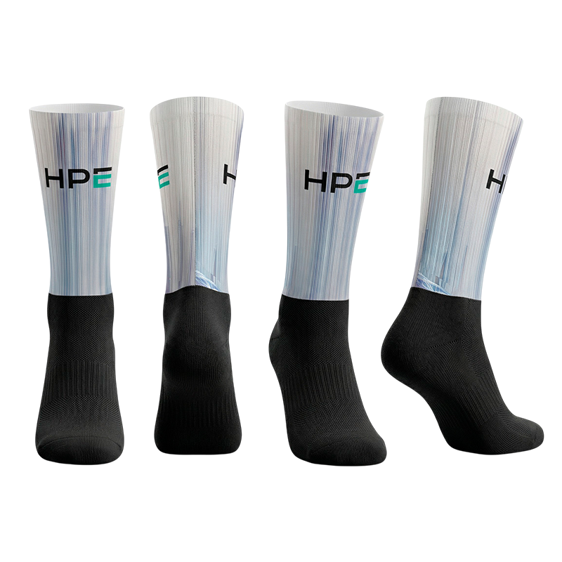 High-performance technical socks featuring aerodynamic fabric, gradual compression, arch support, and an internal non-slip silicone band for a secure fit. High-definition print technology ensures long-lasting designs, while the moisture-wicking fabric keeps your feet fresh and comfortable on every ride, 79% polyester 21% spandex.